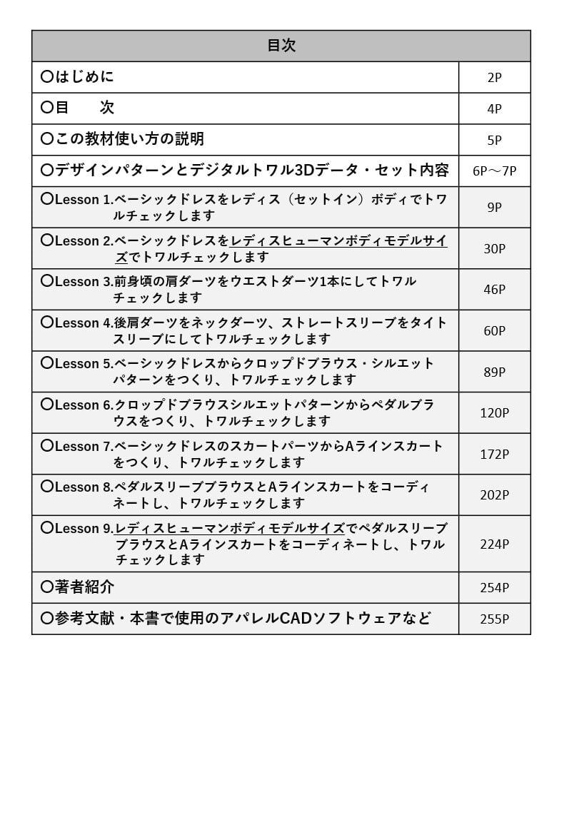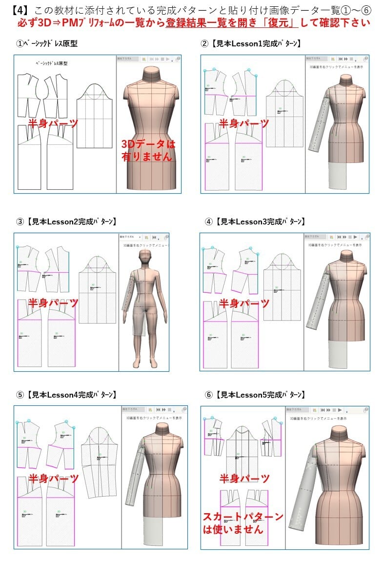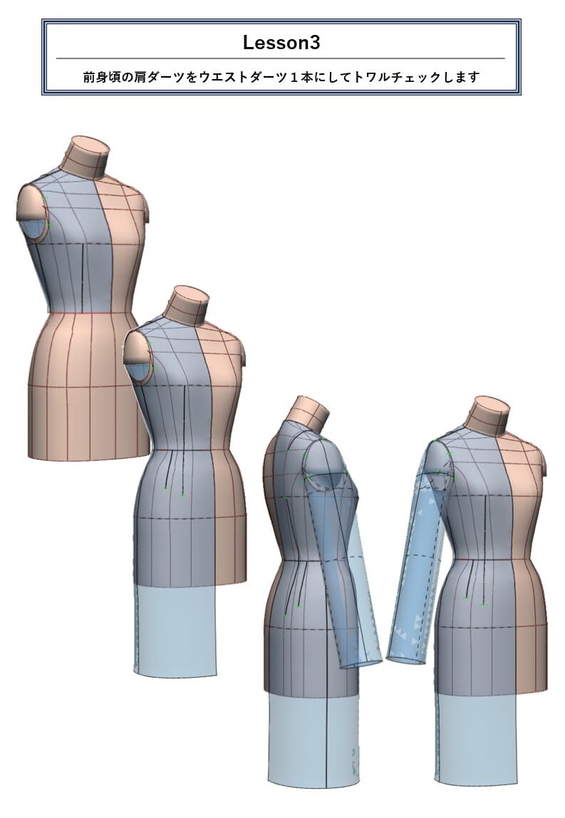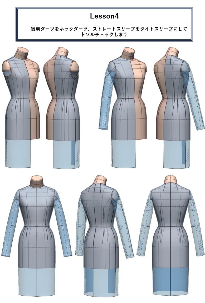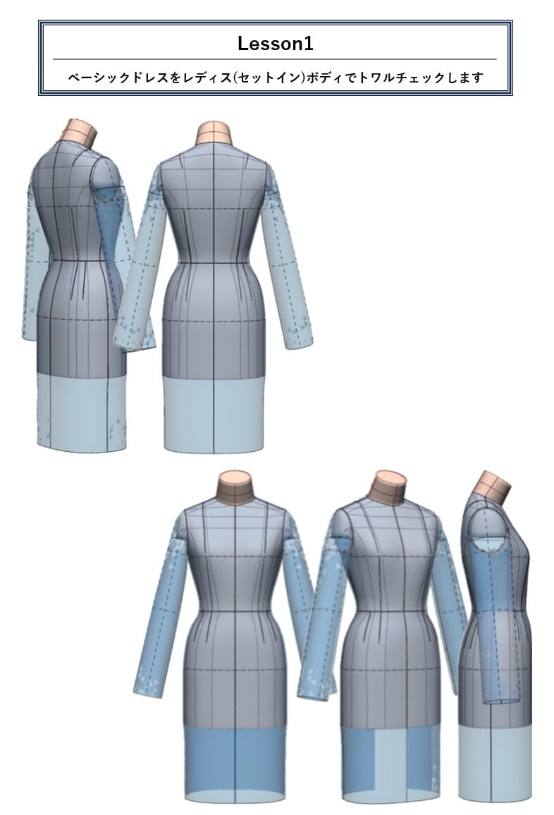 (1)基礎編として、Lesson1、2、3、4で「ベーシックドレスパターン」を中心にしたデジタルトワ