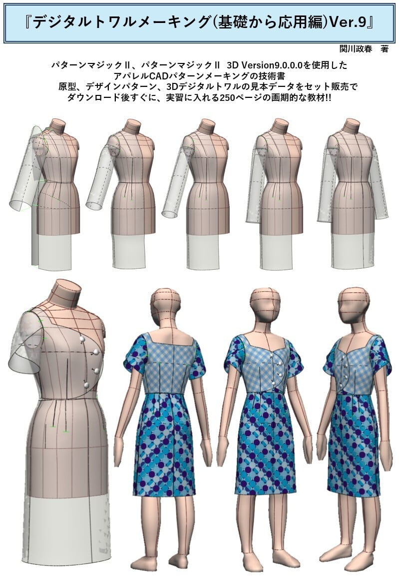 パターンマジックⅡ、パターンマジックⅡ 3D Version9.0.0.0を使用したアパレルCADパターンメーキングの技術書。原型、デザインパターン、3Dデジタルトワルの見本データをセット販売でダウンロード後すぐに、実習に入れる250ページの画期的な教材!!。