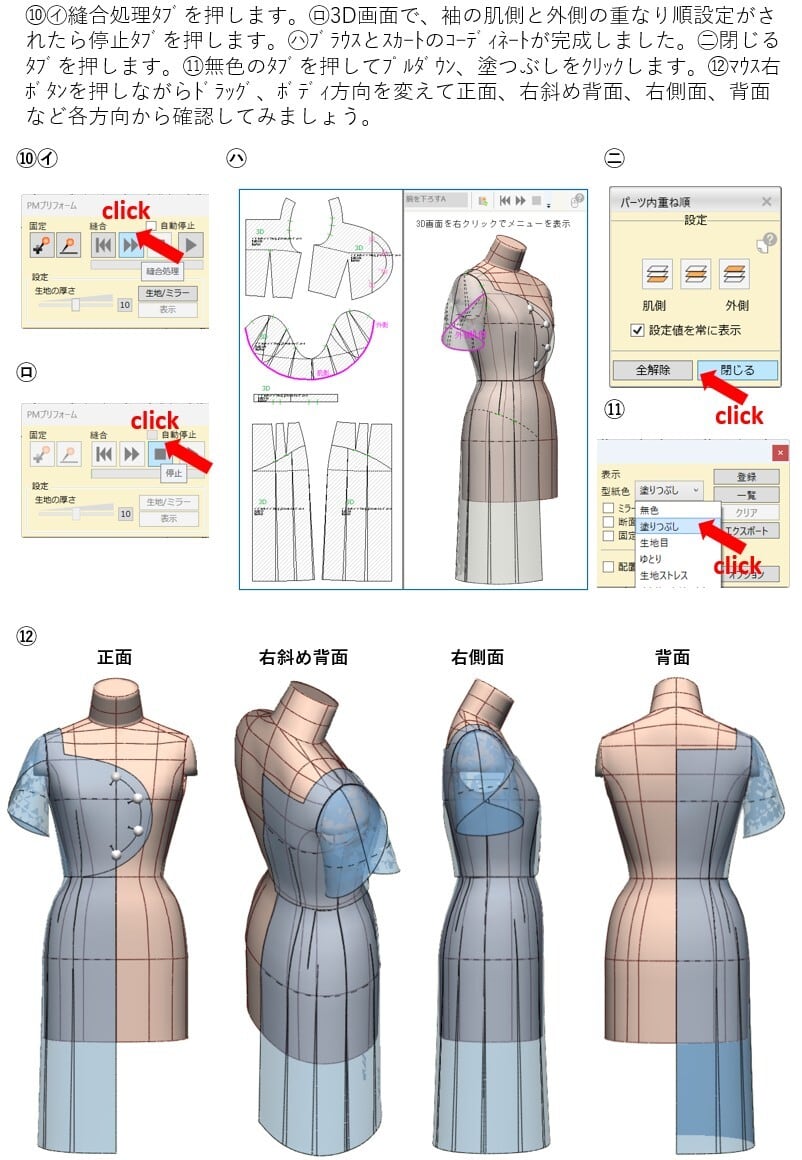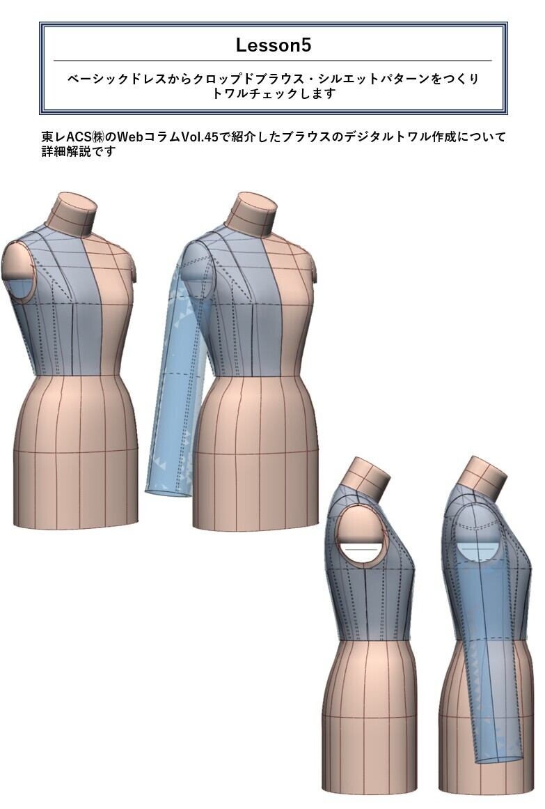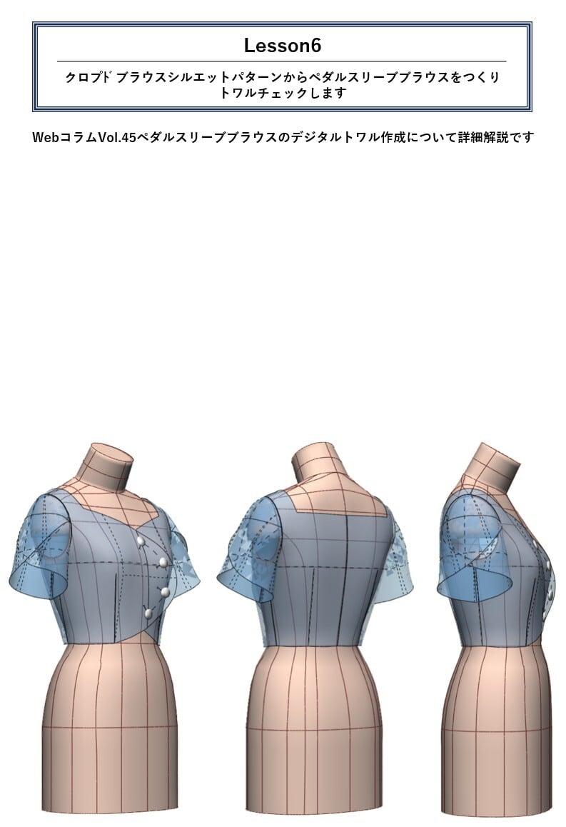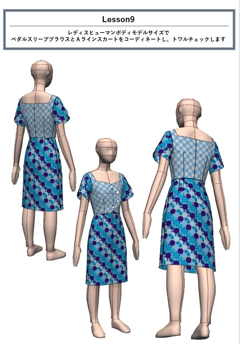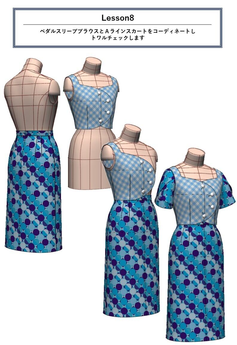 (2)応用編として、Lesson5、6、7、8、9でペダルスリーブブラウスとAラインスカートのデザイン