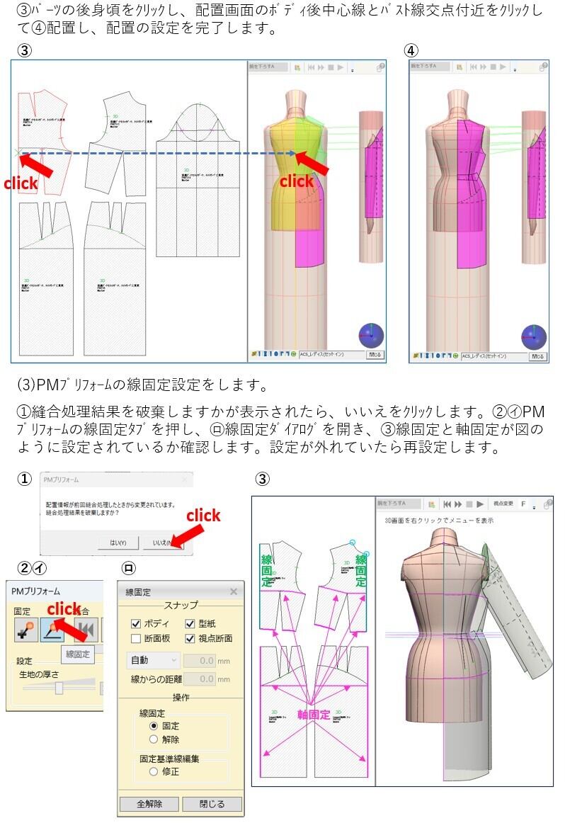 この教材購入者のPCにVer.9のパターンマジックⅡおよびパターンマジックⅡ3Dソフトがインストールされている必要が有ります。PC同一画面でパターンメーキングとデジタルトワルチェックを併用した高度で効率的なパターンメーキングシステムを習得できます。